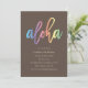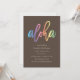 Este convite de festas apresenta a palavra "aloha" em um roteiro manuscrito no arco-íris. A cor de fundo e os campos de texto são totalmente personalizáveis.