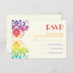 O arco-íris cola a placa de resposta/resposta RSVP do casamento tema damasco que apresenta um motivo damask nas cores do arco-íris no fundo do marfim. Este design moderno, porém clássico, é um modelo e faz parte de um casamento adequado para um primavera, verão de casamento outono com um tema arco-íris. É personalizável e pode ser personalizado. Cores: Vermelho, laranja, amarelo, verde, azul, violeta roxo, marfim.