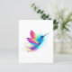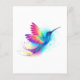 Bela, iridescente, exótica beija-flor voadora sobre fundo branco, pintada com pintura multicolorido, aquarela. Cotovelo-cotovelo.