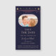 Marinho Místico Arco-Íris Escuro Azul Sol Lua Estrelas Espaço Salvar As Datas Magnet apresenta um arco-íris colorido sol, lua e estrelas numa luz azul marinho escura. Dentro é a sua foto favorita e o seu personalizado salva as informações de data. Personalize editando o texto nas caixas de texto. Projetado por ©2024 Evco Studio www.zazzle.com/store/evcostudio