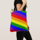 Esta bolsa de tote é mostrada com um design de impressão de arco-íris festivo. Tamanho médio mostrado. Tem pulseiras negras. Personalize este item ou comprar como está.
