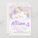 Arco-íris unicórnio convite de aniversário aquarel