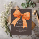 Um fundo castanho escuro e escuro. Decorado com um arco laranja. Personalize e adicione os detalhes da festa. 1 folha = 1 convite impresso de borda a borda.