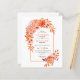 BUDGET Arch e flores laranja convite para casamento outono de código QR. Este convite para o casamento de na moda mostra um arco de boho decorado com flores laranja brilhantes e folhas verdes, resultando em uma design impressionante e cativante. A mistura de dália e rosa floresce em vários tons de laranja traz um toque romântico e elegante à estética geral. O verso do convite é mantido mínimo com um pano de fundo branco intocado, garantindo que a atenção permaneça no belo arco floral. Além disso, a incorporação de um código QR para RSVPs on-line acrescenta um elemento contemporâneo e prático a este convite de casamento para baratos.