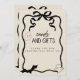 Adicione um toque de elegância à sua mesa de presentes com nosso Sinal de Mesa A Little Boo Cards e Gifts. Apresentando um arco preto na moda com fantasmas/morcegos e as palavras "Cartões e Presentes" juntamente com "Obrigado por Celebrar Conosco", este cartaz de mesa é uma forma encantadora de guiar os seus convidados. Perfeito para uma comemoração neutra em termos de gênero, este sinal combina lindamente com itens correspondentes da nossa Coleção de Chás de fraldas A Pequeno Boo para criar uma decoração de evento coesa e na moda.