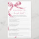 Arco rosa - Jogo "Quem conhece melhor a noiva" - Adicione alguma diversão ao seu chá de panela com este charmoso cartão de jogo com um delicado design cor-de-rosa pincelado. Este jogo "Quem conhece melhor a noiva" é perfeito para envolver convidados e celebrar o estilo da noiva. Com uma escrita elegante e sotaques femininos, este cartão de jogo é uma bela adição a qualquer tema chá de panela, fazer-o como uma lembrança memorável para a noiva e seus entes queridos. *** Insira o H121 na pesquisa da loja para encontrar todos os itens correspondentes *** Ou visite nossa Coleção de Arcos Rosa. *** Este design de alta qualidade é fácil de personalizar para combinar as cores do casamento, estilos e temas. Para mais personalização, clique no link "Editar usando a Ferramenta de Design" e use nossa ferramenta design para modificar esse modelo. Se precisar de ajuda ou itens correspondentes, entre em contato comigo.