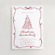 Prepare o clima para uma celebração quente e festiva com este convite de janto de Natal vermelho. A design apresenta uma moldura ondulada pintada à mão ao redor de uma corajosa árvore de Natal vermelha, criando um charmoso equilíbrio de detalhes artísticos e elegância sazonal. Com seu estilo de fronteira e feriado clássico, este convite captura a magia da estação de uma forma sentida. Perfeito para jantas de Natal, reuniões familiares, ou festas festivas, é uma maneira bonita e convidativa de dar as boas vindas aos seus entes queridos para uma noite especial de férias.