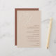 Um belo cartão de cardápio de casamento baseado em tipografia, que apresenta suas iniciais em letras de script sobredimensionadas no topo, em tons em tons para um efeito de marca d'água. Personalize com seus itens de menu embaixo, alinhados à direita. A nossa Mancha de Areia é uma mistura elegante de tons de terra, com natas pálidas e letras de argila terracota em um fundo bege suave.