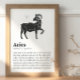 Aries Zodiac Sinal preto e poster branco. Cada sinal ostenta uma abordagem individual à vida, completa com pontos fortes e fracos. Aqui está o que você deveria saber sobre os sinais do zodíaco. A astrologia e a astronomia estavam inextricavelmente ligadas por milhares de anos, e embora esses dois campos tenham sido desentrelaçados com o tempo, os ensinamentos místicos do cosmos ainda nos guiam hoje. Encontre seu Sinal Zodíaco na minha loja! © Todos os trabalho de arte são direitos autorais de Obrigados GoodPrintShop para visitar! ✌