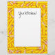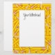 Personalize com o seu texto. Borda colorida de lápis amarelos pontiagudos com borrachas para escola, casa e escritório.