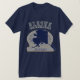 Um design gráfico de uma bandeira de forma de mapa do Alasca pelo artista/designer Charmaine Paulson em uma camiseta mens Bella Canvas. A camiseta tem o texto Juneau Alaska. ©2012