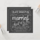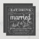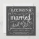 Quadro rústico extravagante "estoque convites do chá de casamento do bar" -- Coma, bebida & é casado. Swirly, rolos encaracolado e quadro rústico extravagante no quadro-negro das cinzas de ardósia. Adicione o nome noiva-à-estar e a informação do partido de chá neste modelo fácil de usar. Caligrafia do giz do estilo do vintage e tipografia lunática do roteiro - mude os estilos de pia batismal para refletir seu tema retro formal ou semi-formal do casamento. O estilo quadrado do convite do conselho de giz é perfeito para casamentos modernos na moda com um toque do divertimento de encanto sofisticado para os noivos tradicionais. NOTA: Este design de produto setup para cartões quadrados somente, que exige o porte postal extra.