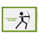 Arqueiro com seu cartão de saudação horizontal personalizado preto e verde de arqueria arco que exibe um ícone minimalista de uma silhueta preta de um arqueiro e seu texto sobre fundo branco com borda verde. Este design legal e moderno é um modelo e é completamente personalizável.