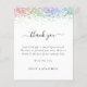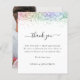Um valor para o alternativo do ORÇAMENTO em tamanho menor de 4,5 x 5,6" de semirbrilho de 110 lbs, que é de espessura semelhante a um cartão postal (no entanto, não é adequado para uso como cartão postal). POR FAVOR, OBSERVE QUE HÁ UM convite por folha. Boate De Foto Do Arco-Íris De Orçamento Obrigado. Um toque de vidro com uma falsa borda brilhante no topo e um roteiro elegante com baloiços para Obrigado. No verso, substitua a imagem por sua favorita do dia como guardiã para seus convidados. Personalize facilmente o resto do texto com sua mensagem e nomes.
