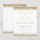 Dourado Casamento De Bordas De Leitura Salva A Data. Um alternativo de 4,5 pol x 5,6 pol com preço inferior. Disponível em um STOCK DE CARTÃO SEMI GLOSS 110 lb, que é a opção padrão (recomendada para convites), OU um STOCK DE PAPEL THINNER SATIN FINISH 80 lb (ideal para gabinetes). Os envelopes são um extra opcional e são ligeiramente maiores que o tamanho da placa. Dourada falha falsa nas bordas superior e inferior e um script de conjunto informal para Salvar nossa data. Personalize facilmente o resto do texto para seus detalhes.