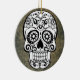 Crânio preto e branco de tendência com fundo ardente. O crânio de açúcar tem um olho na testa.