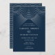 Faça o Excelente mais incrível do dia de casamento Gatsby com esses Convites de Casamento em Deco de Arte, e reflita seu estilo único. Eles estão com as luzes de cordas inspiradas pelos vestidos de flaper do 1920 rugindo. Este design de vintage tem algumas luzes de cinza luminosa fazer o centro da atenção e define o tom para o seu evento. O texto está em uma fonte branca moderna com alguns elementos de fonte de script de cinza de luz sobre um fundo azul marinho rico e elegante. O backer apresenta um padrão de deco de arte que corresponde ao convite por toda parte. Você pode personalizar a fonte, a cor e o tamanho de todos os elementos.
