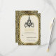 Art Deco chandelier black, gold RSVP Response/response card com um candelabro preto, uma fronteira no estilo Art Deco e um damasco floral preto e ouro em bege/névoa. Este elegante design é uma abordagem moderna a um estilo vintage/retro que se assemelha ao estilo Roaring 20 e The Excelente Gatsby. Faz parte de um casamento e é completamente personalizável.