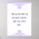 Um padrão clássico do estilo de deco de arte criado em lilás e púrpura, com uma citação cristã: "Não importa o quão longe você tenha perdido, Deus ainda te ama."