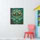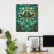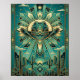 Elevate your space with this stunning fusion of Mid-Century sophistication and rugged Western charm. This premium poster features a stylized cowboy hat centered against a magnificent geometric sunburst and fan motifs, inspired by the classic Art Deco era. The palette of deep teal, emerald green, and shimmering metallic gold outlines brings a luxurious, modern feel to traditional desert elements like saguaro cacti and mountain silhouettes.