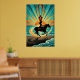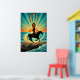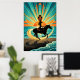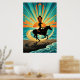 Art Deco Cowgirl Horse Beach Waves Sunset Poster