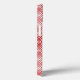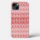 Esta capa de telefone tem um design de deco de arte que sobrepõe os diamantes em efeito absoluto de vermelho num campo de branco.