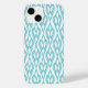 Esta capa de telefone tem um design de diamantes Art Deco ligado por linhas curvas em turquesa.