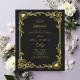 Para um elegante, estilo Gatsby, 50º aniversário de casamento. Um fundo preto decorado com uma estrutura de estilo deco de arte ouro com flores e o sinal infinito, loop. Personalize e adicione seus nomes e detalhes da festa. 1 folha = 1 convite impresso de borda a borda.