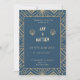 Excelente de Arte Gatsby, convite de casamento. Com formas geométricas douradas sobre fundo azul marinho