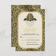 Os prédios de abstrato de Art Deco preto e dourado, resposta/resposta RSVP de casamento, com edifícios abstrato e uma fronteira no estilo Art Deco e damask preto e ouro. Seu texto está em um quadro bege/ecru. Este elegante design é uma abordagem moderna a um estilo vintage/retro que se assemelha ao estilo Roaring 20 e The Excelente Gatsby e adiciona luxo e glamour ao seu casamento. Faz parte de um casamento e é completamente personalizável. Alguns elementos são cortesia de All-Free-Download.com