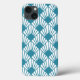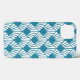 Esta capa de telefone tem um design de diamantes com deco de arte com linhas diagonais que se parecem com fãs em um campo de branco.