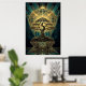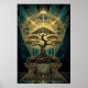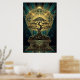 Art Deco Zen Bonsai Tree Mandala Gold Teal Poster