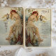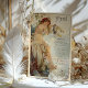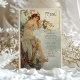 Esta carta de cardápio encantadora de Art Nouveau apresenta uma cena serena e romântica de uma mulher adornada com uma coroa de videira, inclinada graciosamente pela borda de uma água tranquila. Com uma paleta suave e natural de verdes sábios, beges quentes e blues gentis, esta design incorpora a elegância e o charme da era Art Nouveau. Os intrincados detalhes da videira evocam um senso de abundância e natureza, fazer esse cardápio ideal para casamentos vinhedos, boêmicos ou antigos. O menu no verso é apresentado num esquema clássico, elegante, adicionando um toque de sofisticação à decoração da mesa de casamento.