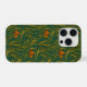 A decorative artwork depicts a stylized orange goldfish swimming through flowing, ribbon-like aquatic forms. The fish, positioned in the upper-left, features intricate, layered scales and delicate fins rendered in warm oranges and golds. Surrounding it are sweeping, golden-yellow lines that resemble underwater plants or currents, curling into elegant spirals at the bottom. The deep teal-green background contrasts richly with the luminous gold and orange elements, creating a sophisticated, Art Nouveau-inspired feel. The piece appears three-dimensional, reminiscent of paper quilling or relief art, with graceful movement and harmonious color balance.