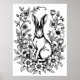 Coloring poster an Art Nouveau-inspired coloring poster featuring a poised rabbit surrounded by elegantly flowing floral motifs. Stylized flowers and leaves frame the rabbit, creating a balanced, decorative composition with intricate, graceful detailing throughout.