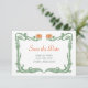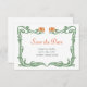 Este elegante convite para o casamento foi inspirado pela beleza do movimento Art Nouveau. Uma fronteira elaborada de verde e tulipas enquadra o texto.