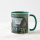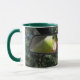 Paródia da senhorita Margarida dos pássaros de Parrotlet "conduzindo" de dois Parrotlets que olha através de um espelho retrovisor que decora este cupt como um envoltório em torno da imagem. Copo do divertimento e maneira do divertimento de começar o dia com uma chávena de café e um divertimento dois mornos que amam Parrotlets.