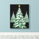 Arte canvas mostrada com uma impressão de arte festiva de árvores de Natal. 11 x 14 Tamanho Mostrado.