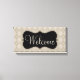Um padrão clássico de argila bege decora este sinal de boas-vindas de na moda. A imagem é da arte original.
