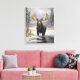 A arte da canvas é mostrada com uma impressão de arte fotográfica de um alce selvagem no rio no Parque Nacional de Yellowstone. Imagem licenciada