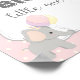 Arte de parede com design de elefante rosa e balão e fundo de bolinhas.