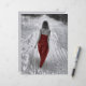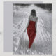 Garota gótica vestindo vestido vermelho andando em papel de álbuns da floresta de inverno. Este papel de 110 lb pode ser usado para seus projetos de álbum de fotos, artesanato ou desacoplamento que exigem papel mais pesado. Cinza preto e branco. Imagem copyright Marg Seregelyi Fotografia.