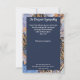 Personalize um cartão de compaixão com a foto do falecido amado. O fundo apresenta um fundo digital de girassol azul e dourado. A citação, "A vida é eterna, e o amor é imortal, e a morte é apenas um horizonte; e um horizonte não é nada além do limite de nossa visão", está na frente abaixo da foto, nome e anos de vida. Na parte de trás está espaço para a ordem dos serviços para o funeral, a lista de palestrantes, e outra citação, "Como um pássaro cantando na chuva, que memórias agradáveis sobrevivem no tempo da tristeza", de Robert Louis Stevenson. Fotos e texto são configurados para serem personalizados com suas próprias fotos e texto. Se precisar de ajuda para personalizar, entre em contato comigo.
