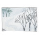 Uma paisagem de inverno nevada com árvores e uma parede seca de pedra. Arte original de Nic Squirrell.