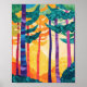 Adicione um burst de cor ao seu espaço com esta vibrante pintura abstrato de uma cena de floresta estilizada. O layout vertical apresenta árvores altas e finas em tons negros de azul, roxo e vermelho para os troncos, com folhagem verde-esbranquiçada. O fundo é um gradiente quente de amarelos e laranjas, evocando o brilho de um pôr do sol ou do nascer do sol. Escovas amplas e texturizadas criam uma sensação dinâmica e viva, enfatizando cor e forma sobre detalhes realistas. Este trabalho de arte impressionista moderno transmite uma sensação de profundidade e movimento através de sua composição em camadas, fazer-o como uma adição marcante a qualquer sala.