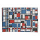 Negrito e moderno, esta arte geométrica da abstrato apresenta uma grade impressionante de formas vermelhas, azuis, pretas e brancas. Perfeito para espaços contemporâneos, escritórios ou amantes de arte que buscam um texto de demonstrativo com linhas limpas e contraste de cores vívidas