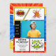 Pronto para salvar o dia e celebrar? Este convite foi inspirado por aqueles quadrinhos clássicos, recheados de ação que todos adorávamos quando crianças. Imaginem: um vilão misterioso ameaça roubar todo o bolo de aniversário, e só você pode montar uma equipe de super-heróis (seus amigos!) para detê-los. Com a ousada arte de pop como "OMG!" e "WOW!", esta design é perfeita para a sua cesta épica de aniversário do super-herói. Prepare-se para uma aventura!
