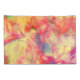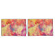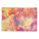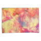 Este conjunto de travesseiros tem um belo padrão de abstrato em cores de laranja, amarelo, rosa, azul-esverdeado e creme que lembra a arte da tinta a álcool.