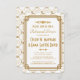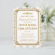 Estes convites de janto de ensaio apresentam uma paleta de cores branca e dourada, uma estrutura geométrica, padrões geométricos e outros detalhes estilísticos inspirados no Art Deco e nos vinte e poucos anos. Você pode personalizar os campos de texto de exemplo de acordo com o seu gosto.