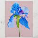 Uma pintura moderna de aquarela fluida do artista Sacha Grossel, de uma flor azul da íris. Este simples design elegante é de uma ilustração pintada manualmente. Moderno, de festa e design floral.